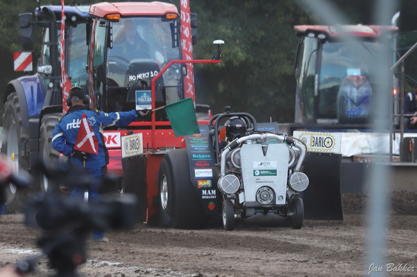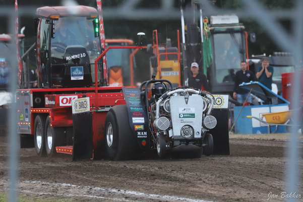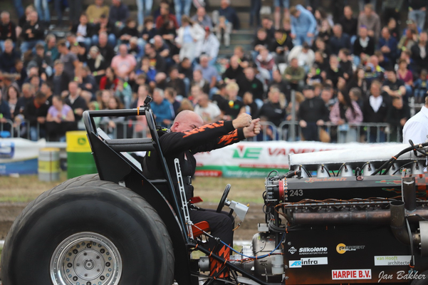 En onze eigen run? Die ging dus prima, de baan in Alphen is ons sowieso al goed gezind en nu ging de Meteor dan ook nog eens goed optoeren, de neus mooi los en vervolgens ging het in bijna rechte lijn naar een machtig mooie afstand van 84,99. Heul blij mee!!! Op de terugweg achter de sleeptrekker nog even moeten stoppen bij de Brabantse speaker van dienst Erik en daar de blijdschap kunnen delen via de microfoon.